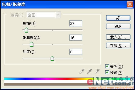 19、调整“色相/饱和度”对话框,参数设置如图14所示,效果如图15所示。