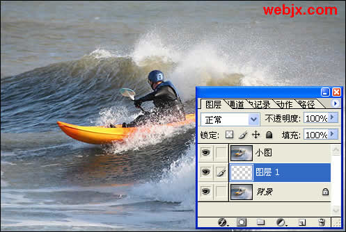 打开原图,按Ctrl J复制图层,改名为“小图”,然后在两个图层中间建立一个新图层。
