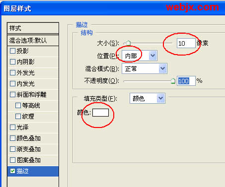 为刚才建立的矩形图层添加图层样式,描边设置如下。