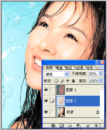 Ctrl J复制选区,然后调整图层模式为滤色,不透明为30%