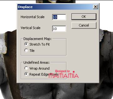 4. 看图,LAYER 1 做一次变形--置换,置换使用刚才第一步骤存的PSD档,预设的就行
