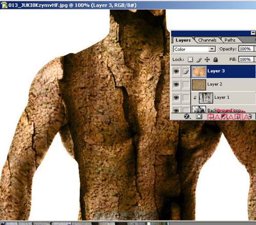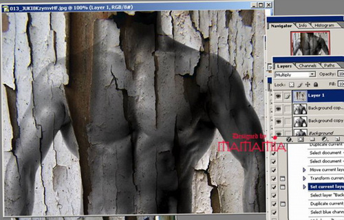 5. 现在用素材3,在加一层在上面,模式-正片叠底,OVERLAY,用锐化工具稍为调一下,如图