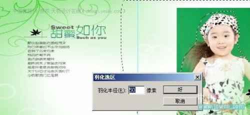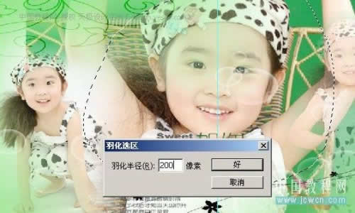 3 大致选取出人物,并羽化(这个图小,所以只羽化了50.如果图大的话可以适当加羽化值)。