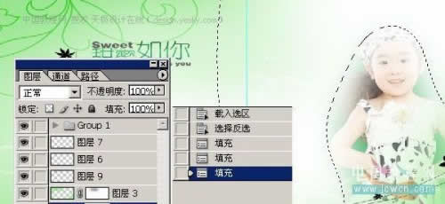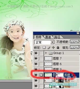 9 进入人物的上一层--绿色颜色层。然后随便画出脸部的形状 羽化 在绿色层的蒙板里填充黑色。