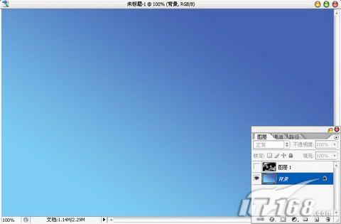 选中背景图层进行操作,由对角线拉出一条浅蓝到深蓝的渐变,这就是我们制作的蓝天主色过渡。如图3所示。
