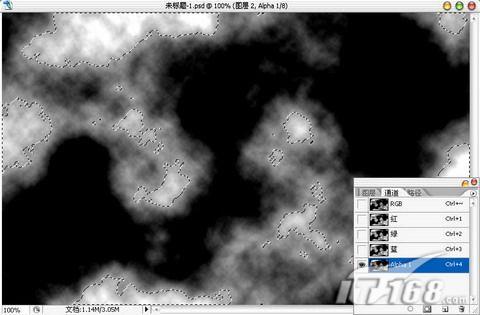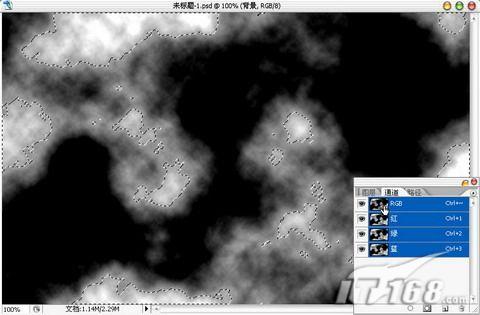 进入通道面板,按住Ctrl 鼠标左键单击RGB通道,提取选区。如图4所示。