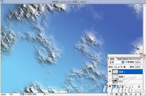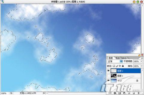 回到图层面版,新建图层2,给选区填充白色。这样简单的云彩效果就出来了。如图5所示。