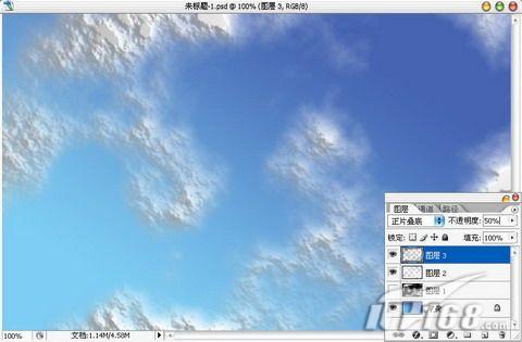 OK大功告成,具有立体感的蓝天白云就这样制作完成了,是不是非常快捷简单呢?如图13所示。