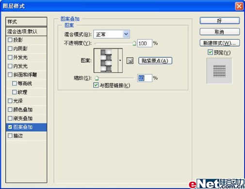 1、新建一个文件。新建图层并填充黑色。单击图层面板下方的“添加图层样式”按钮,选择“图案叠加”命令,设置如图所示。