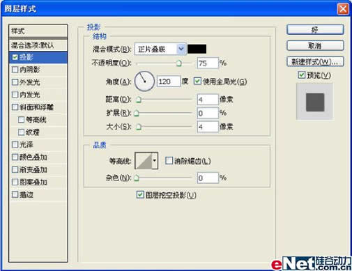 5、执行菜单栏中的“滤镜”“模糊”“高斯模糊”命令,设置参数0.5像素。单击图层面板下面的“添加图层样式”按钮,分别选择投影、斜面和浮雕、颜色叠加样式,设置参数如图所示,画面效果如图所示。