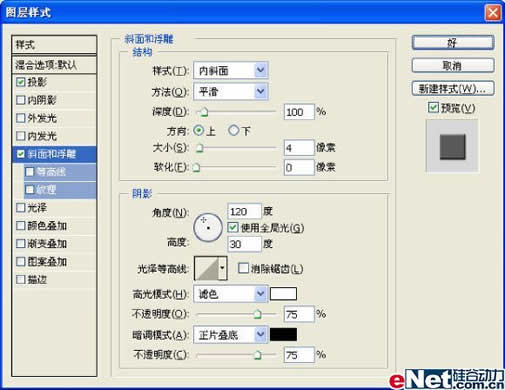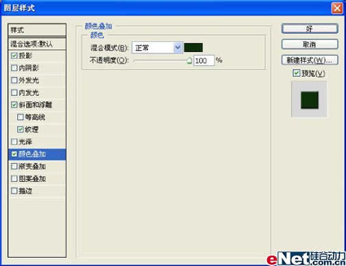 7、选中刚才的新图层,添加图层样式,选择投影、斜面和浮雕、颜色叠加样式,设置参数如图所示,效果如图所示,其余的只改变颜色叠加的颜色,完成后最终效果如图所示,如果觉得颜色不是很好,还可以调整花纹的颜色,效果如图所示。