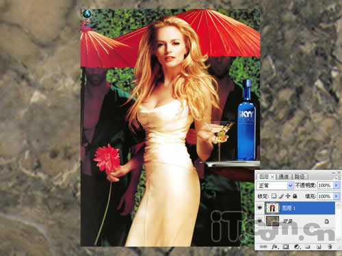 第一步:在Photoshop CS3中打开一张背景素材和一张人物素材,然后使用“移动”工具处理好它们的位置,如图1所示。