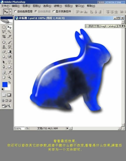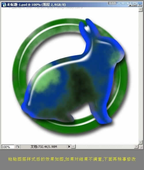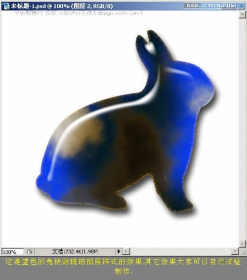 这是蓝色的兔粘贴琥珀图层样式的效果,其它效果大家可以自己试验制作。
