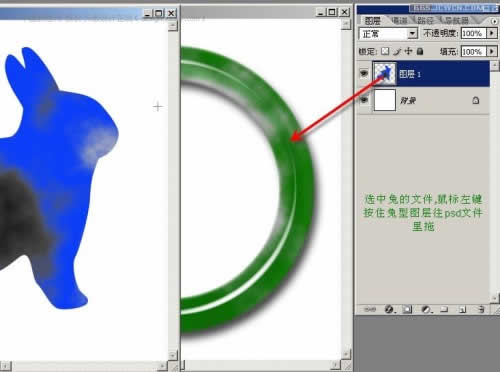 选中兔的文件,鼠标左键按住兔型图层往PSD文件里拖。