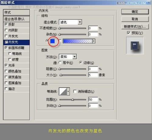 方法是把要制作跟本例相同效果的图形拖到打开的psd文件中,然后右键点击有效果的图层,选择"拷贝图层样式",再右键点击拖进来的图层,选择"粘贴图层样式"即可使新加文件得到本例效果,还可以打开原样式更改参数,以达到满意的结果。