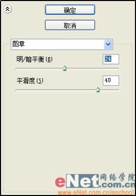 执行滤镜/素描/图章命令,将“明/暗平衡设置为24”,平滑度设置为40,单击确定按钮。