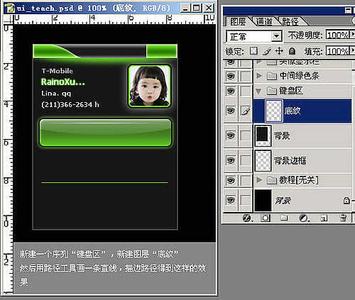 22、现在开始做键盘区。建立一个序列“键盘区”,新建图层“底纹”。用路径工具画一条直线,对直线进行描边。