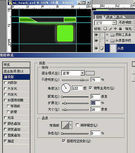 14、对“头像”图层进行描边,颜色叠加和投影效果的添加,参数设置如下: