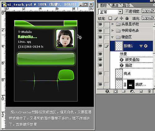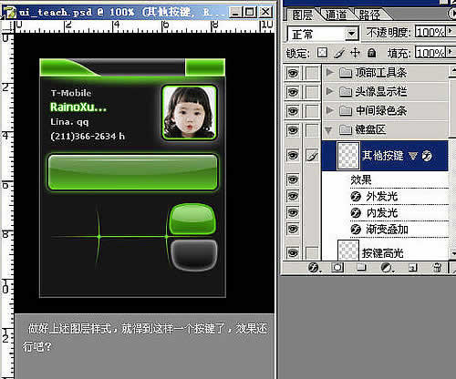 28、新建一个图层“其它按键”,调出刚才存储的路径,变换一下位置,添加如下图层样式。