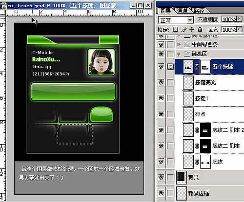 29、用同样的方式做出所有的按键,合并所有灰色按键的图层,加上蒙板,一个区域一个区域地做出效果。