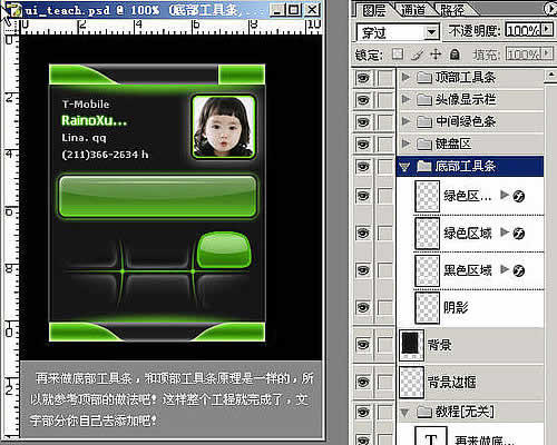 30、再加上底部工具条,和顶部工具条是一样的原理,整个制作过程就基本结束了,按键上的文字大家自由发挥吧。