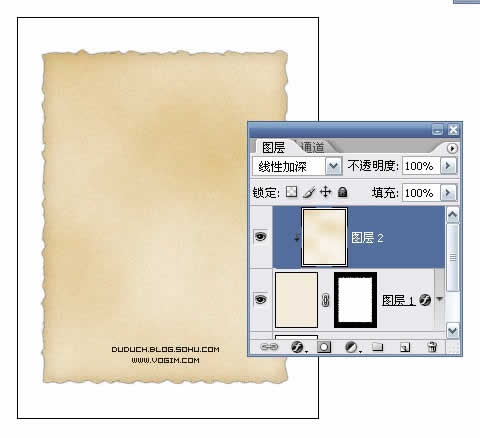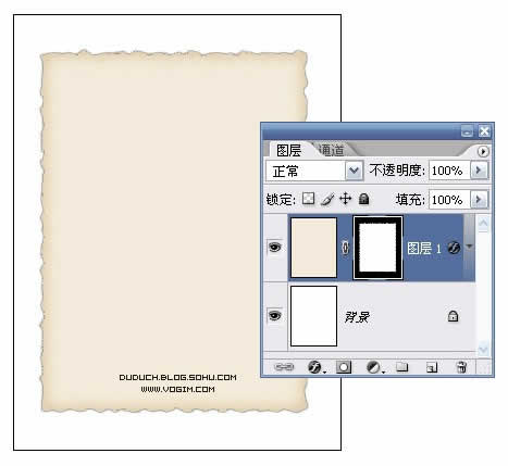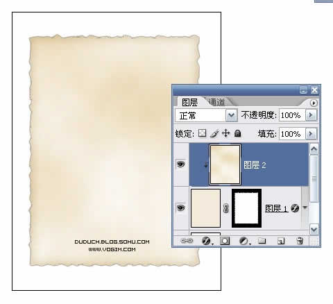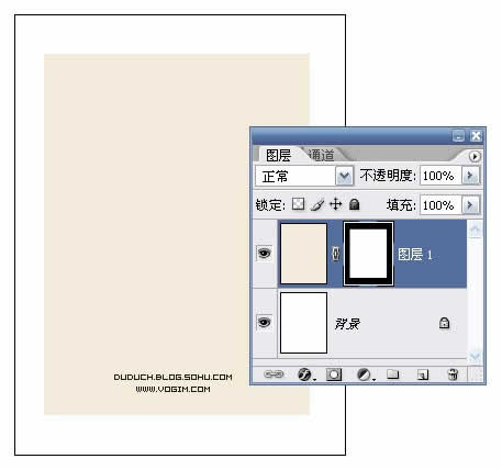 3.设置前景色为白色,背景色为RGB(242,235,217),新建图层,填充前景色,按Alt点击图层调板上该层和下层的中缝,形成剪切图层效果。