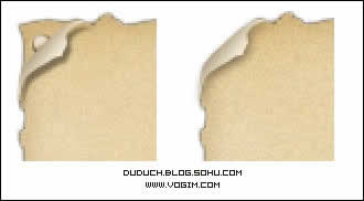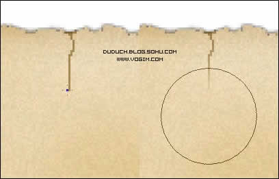 4.新建图层,设置图层的混合模式为正片叠底。设置前景色为RGB(176,161,123),使用1像素铅笔在边缘绘制撕裂缝,并用60像素柔角橡皮将内侧部分擦除,产生出逐渐变细的效果。