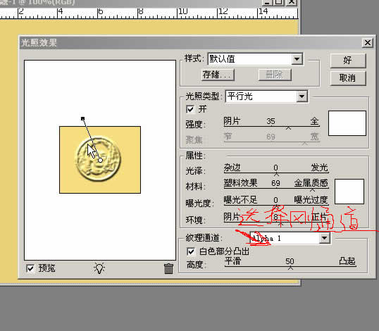 通过通道的明暗利用光照滤镜来产生凹凸纹理