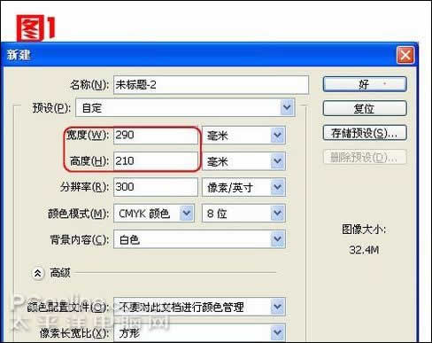 这里笔者用的是白色T恤,首先打开Photoshop新建文件,大小选A4规格,分辨率300,印刷模式。需要注意的是要将A4规格的文件宽度和高度对调一下,我们需要横版的文件。如图1。