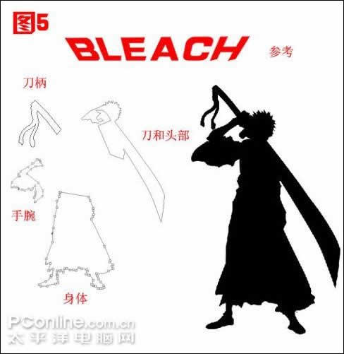 这里选用的图片素材是人气漫画《死神》里的主角,笔者在这里原创了漫画的LOGO,然后加上了主角的黑影像。如果喜欢**角色,也可以事先找到相关图片素材进行制作。