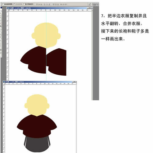 7. 把半边衣服复制并且水平翻转,合并衣服。接下来的长袍和鞋子都是一样画出来。