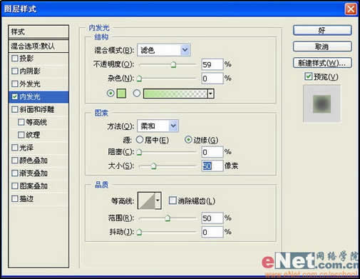 在图层面板中,按Ctrl键单击A图层,载入图层选区,反选选区,按Delete键删除选取范围。双击该图层,给图层添加内发光样式,设置图层模式为正片叠底,设置如图所示。