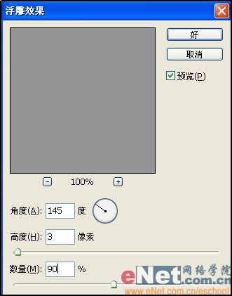 执行菜单栏中的“滤镜”“风格化”“浮雕效果”命令,修改高度为3像素,数量为90。