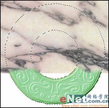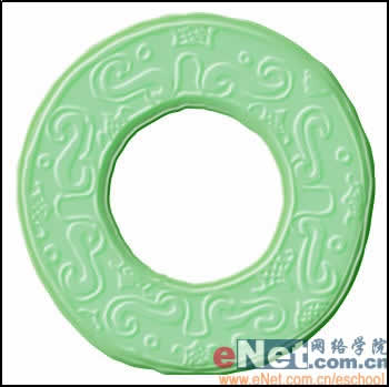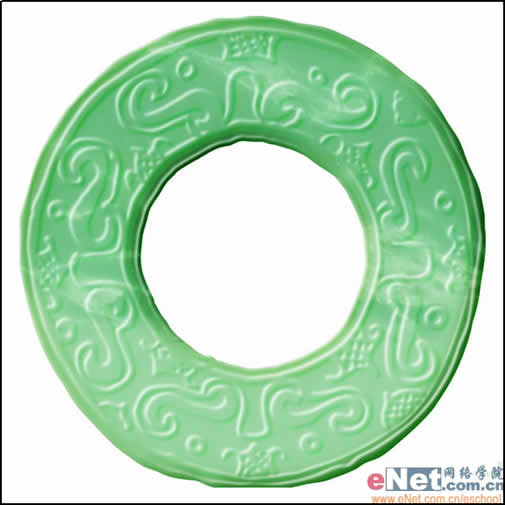 在图层面板中按Ctrl键单击复制图层,载入图层选区,填充玉石颜色。转到通道面板按Ctrl键单击B通道,载入通道选区,回到图层面板,选择比较深一点的绿色填充选区。再回到通道面板,载入C通道选区,填充淡绿色,效果如图所示。