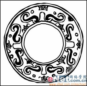 新建一个文件,打开一幅玉纹的图片,选择工具箱中的“魔棒工具”在空白处单击然后反选将玉纹拖拽到文件中生成图层1,效果如图所示。