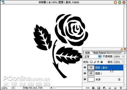 14.将图层1和图层1副本两个图层合并为图层1。如图14所示。