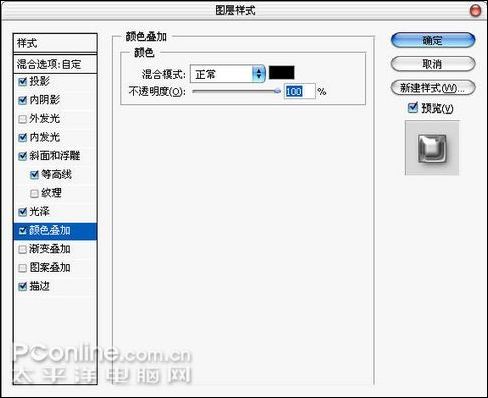12.给图层1副本添加颜色叠加图层样式,不透明度100%。如图12所示。