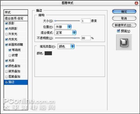 13.给图层1副本添加描边图层样式,大小1像素。如图13所示。