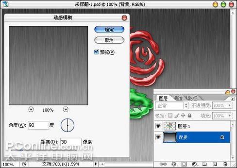 23.执行滤镜/模糊/动感模糊,角度设置为90度,距离为30像素,单击确定应用。如图23所示。