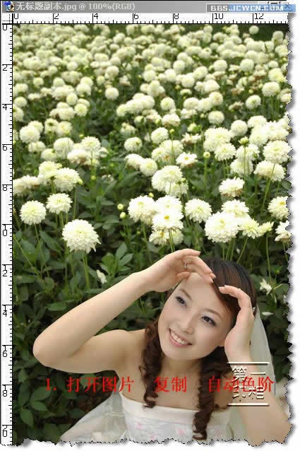 1、打开图片,复制,自动色阶。