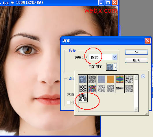 打开原图,使用刚才的图案填充。