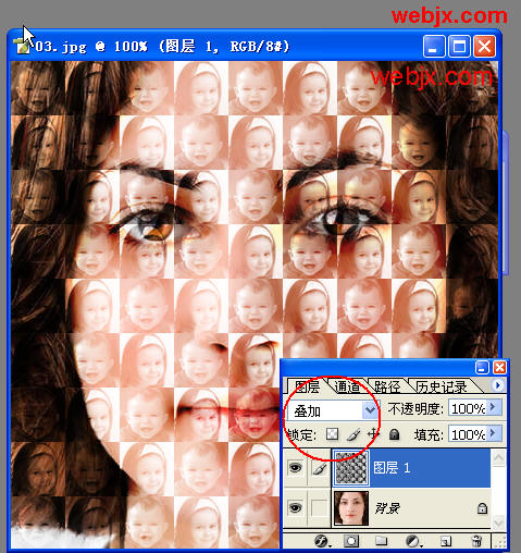 把图层模式设置为叠加。