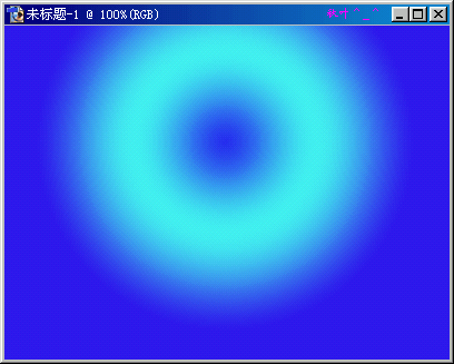 第四步:用径向渐变工具在图像文件中由内向外拖拽出一条线段,得到图四所示的放射性渐变填充效果。
