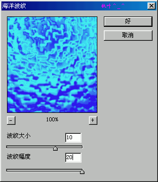 第五步:菜单命令:滤镜→扭曲→海洋波纹。设置参数为图五所示。