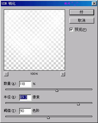 第十二步:菜单命令:滤镜→锐化→USM 锐化。设置参数为图十一所示。(参数可以自行设置,效果满意即可)