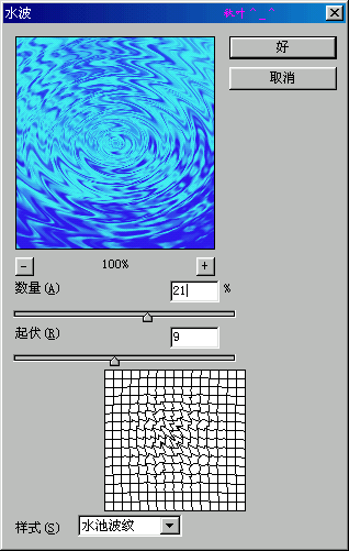 第六步:菜单命令:滤镜→扭曲→水波。设置参数为图六所示。
