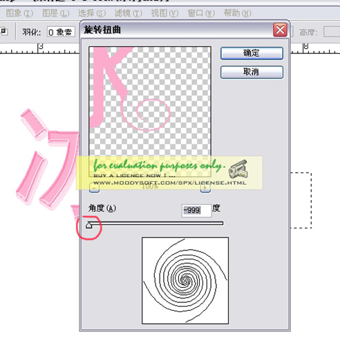 用选框工具选出文字想要加工的地方(扭曲——旋转扭曲)