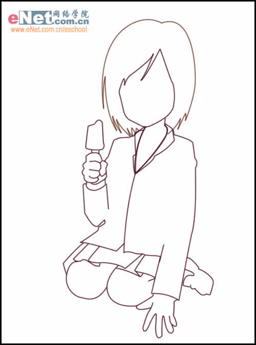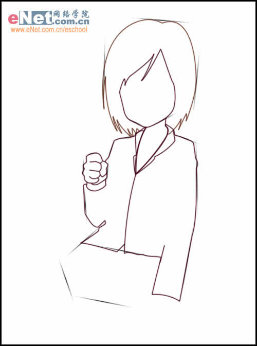 勾出MM的脸部与校服,还有紧握的拳头