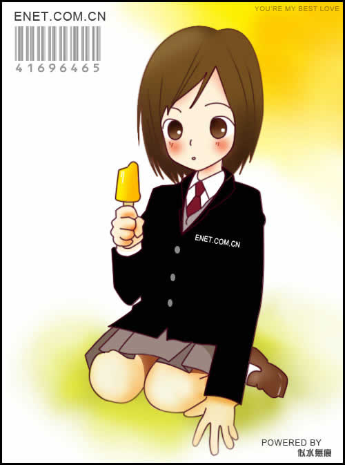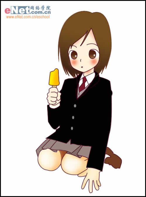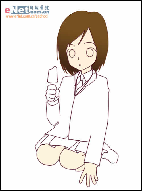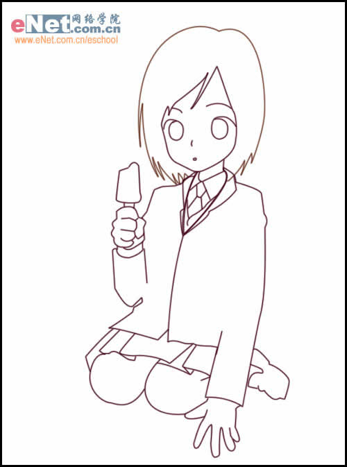 接下来勾出五官,手中的雪糕还有领带。