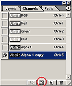 2.现在用点击“通道”标签上的“将选区存储为通过”按钮,在“通道”标签的下面多出一个通道“Alpha 1”,然后可以通过鼠标拖拽“Alpha 1”图层到创建新层标签上复制一份此。